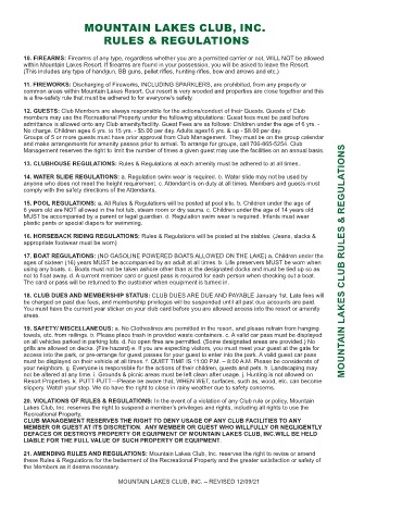 21. AMENDING RULES AND REGULATIONS: Mountain Lakes Club, Inc. reserves the right to revise or amend