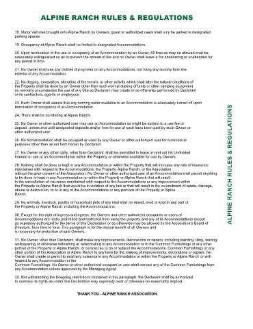 ALPINE RANCH RULES & REGULATIONS