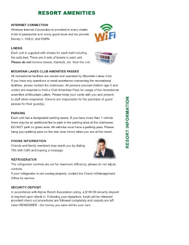 amenities at Mountain Lakes. Please keep your cards with you and present